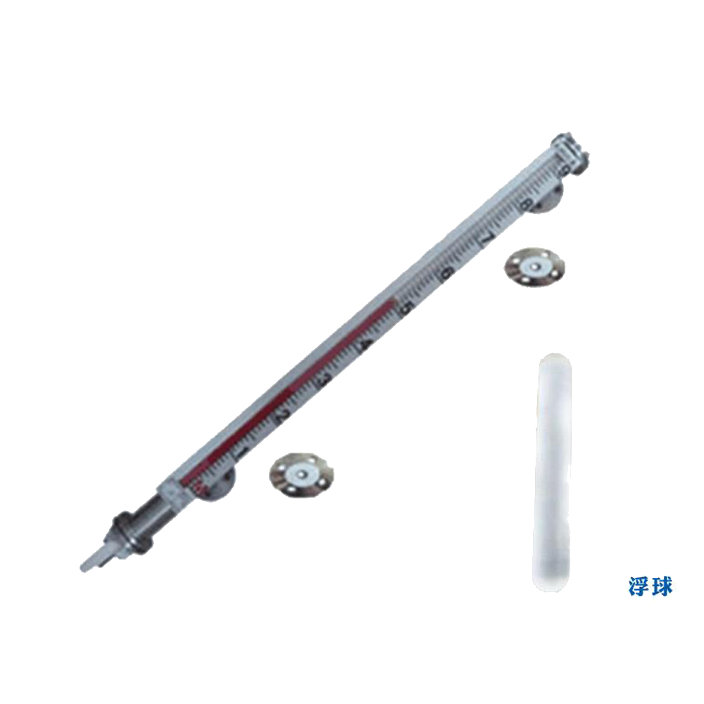 耐腐型侧装式磁浮子液位计的主要原理是连通器原理、磁耦合原理和阿基米德定理。根据连通器原理,筒体内的液位和容器设备内的液位高度一致;根据阿基米德定理,装有永久磁钢的浮球在液体中产生的浮力与重力平衡,浮球浮在液面上,当被测容器中的液位升降时,液位计筒体内浮球随液位升降,通过磁耦合驱动筒体外指示器(俗称翻板架)上的翻柱或翻片翻转。上升时,翻柱或翻片由白转红,下降时,翻柱或翻片由红转白,以汽白液红指示液位。